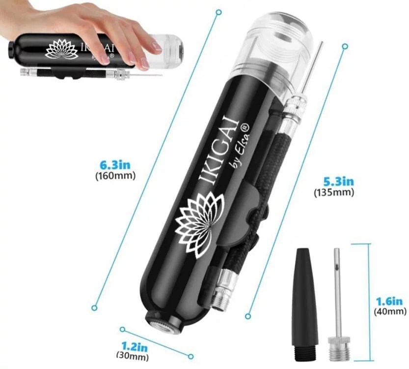Una bomba muy versátil que se envía con aguja metálica para tus IKIGAI,s, y racor para bicicletas, todo en un solo inflador pequeño, resistente y con un inflado potente y rápido sin esfuerzo.